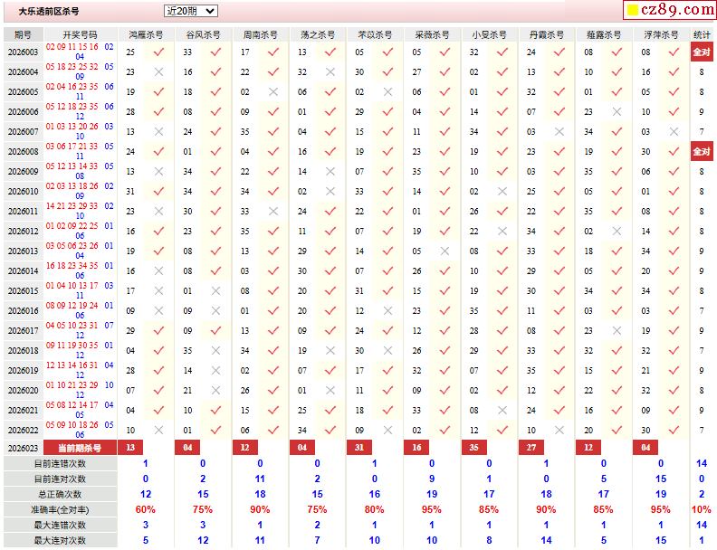 > 26年023期彩票专家超级大乐透前后区杀号图表